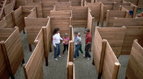 Это деревянный лабиринт, в котором можно встретить клоунов и пиратов во время дневных и вечерних шоу-программ.