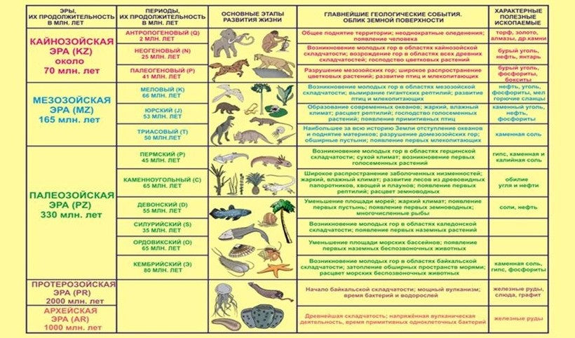 - кайнозой — особо важный этап — появление приматов и развитие из них человека. В это время планета приобрела привычные нам очертания суши.