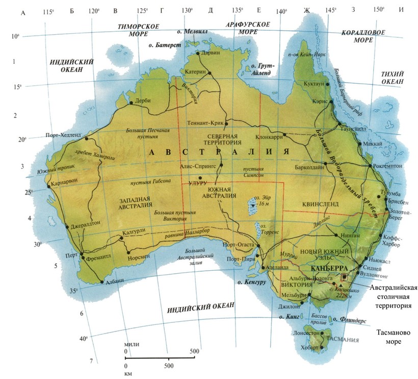 Австралия - это единственное государство на земле, которое занимает полностью весь континент (7,7 млн. км2), его берега омывают Индийский и Тихий океаны.