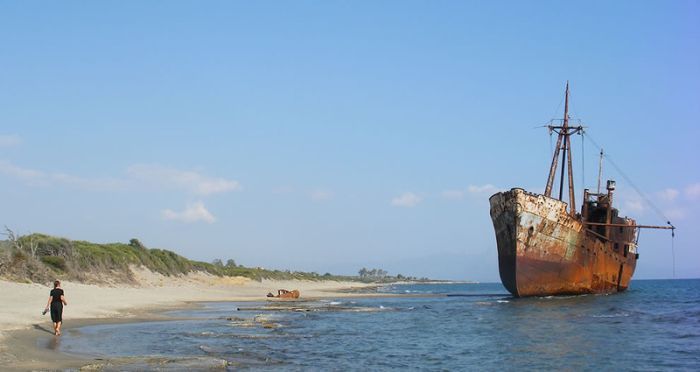 Если вы поедете на восток по прибрежной дороге от рыбацкого городка Гитио, то у залива Лаконикос вы увидите сгоревший корабль MV Dimitrios. Оно загорелось и село на мель около 30 лет назад. В тени ржавеющего корабля получаются очень впечатляющие фотографии. Подводный пловцы смогут изучить его поближе. В Гитио есть прекрасная гавань и ряд таверн, где подают вкуснейшие блюда из рыбы.