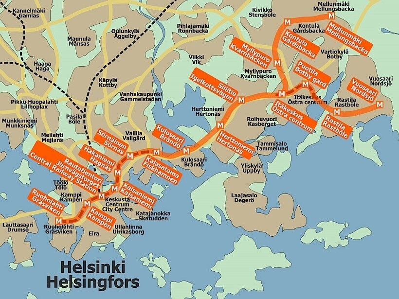 Подземка в Финляндии есть только в одном городе — Хельсинки. На сегодняшний день работают более 20 станций метро. Воспользоваться данным видом транспорта можно с 5:30 утра до 23:00 по будням, до 23:30 — по выходным. Купить билет можно несколькими способами: