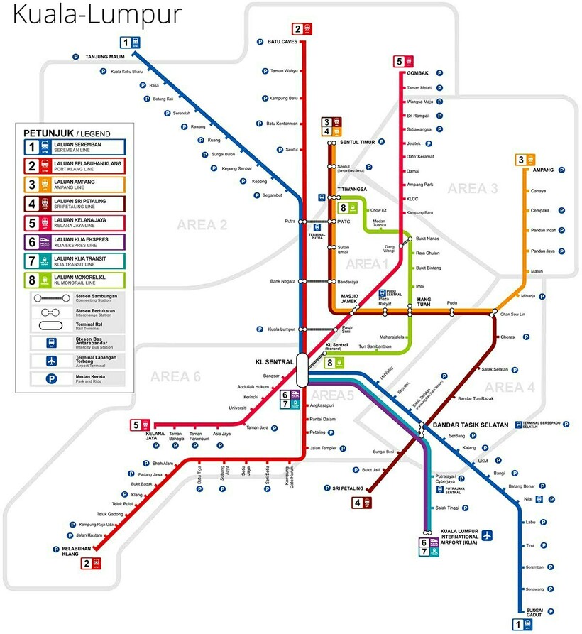Три линии легкого метро LRT доходят до пригородов столицы. Большинство путей и станций — надземные. Входные турникеты пропускают пассажиров по универсальным проездным билетам и жетонам, которые можно купить в автомате. Стоимость проезда в легком метро LRT зависит от расстояния между станциями. За поездку на один перегон (до следующей станции) нужно заплатить 1–3 MYR (20–50 ₽).