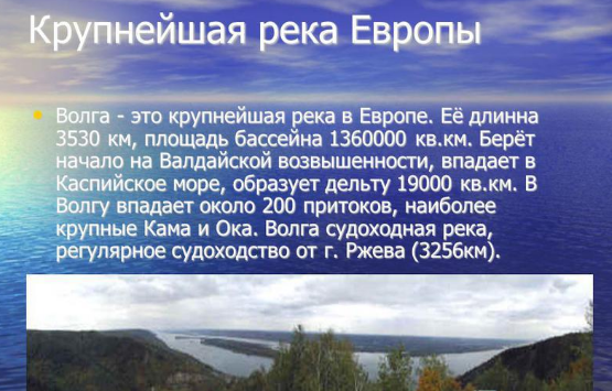 - Равнинная река (Волга):