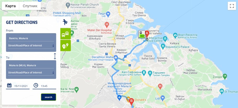 Самые важные для туристов автобусные маршруты из Валетты до мальтийских городов: