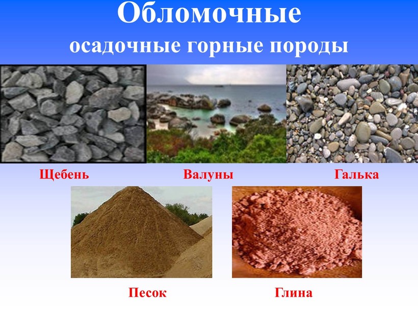 Я живу на равнинной территорий. Среди обломочных горных пород в моей местности самыми распространенными являются: