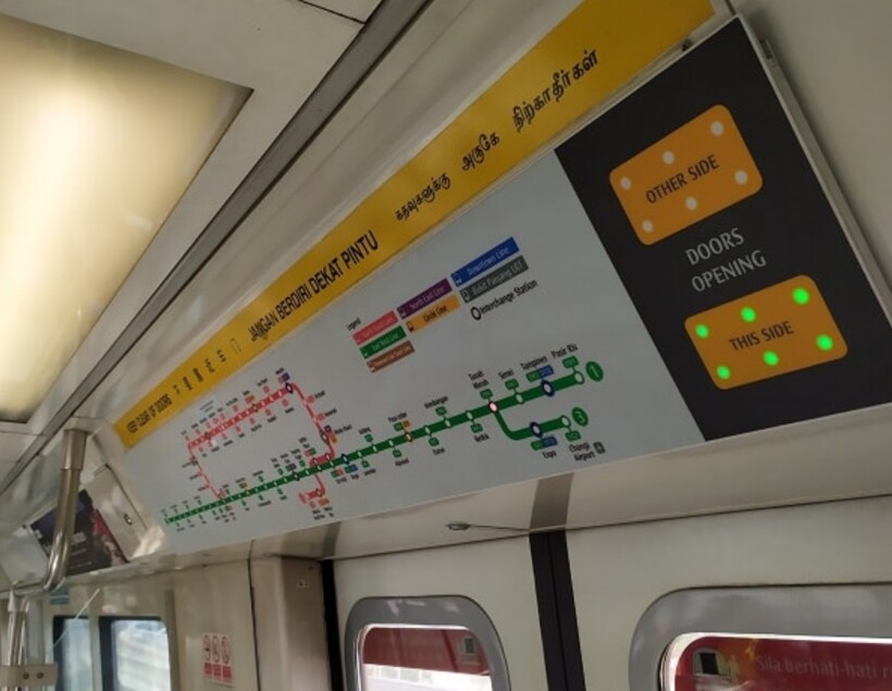 Мест для сидения в поездах не так уж и много, поэтому внутрь помещается больше стоячих пассажиров. В вагонах есть кондиционеры, над дверями размещены табло, на которых можно посмотреть движение по маршруту, какая станция следующая и с какой стороны будут открываться двери.