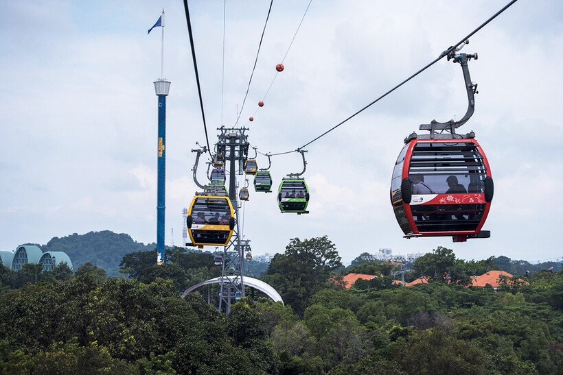 Можно воспользоваться канатной дорогой, чтобы добраться из Сингапура на остров Сентоза.