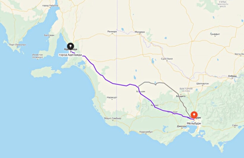 Так, маршрут Мельбурн — Аделаида (длиной 720 километров) автобус компании Greyhound проходит за 10 часов 15 минут, билеты стоят 59–65 AUD (3126–3444 ₽).
