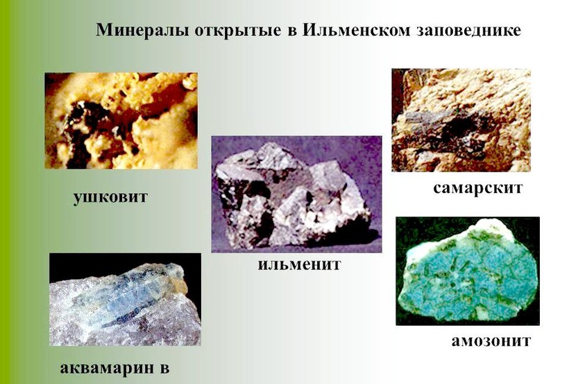 Ильменские горы — это уникальные горные хребты, которые расположены на территории Южного Урала. В этих горах исследователи нашли около 270 различных видов минералов, при чем 16 с них были впервые открыты В Ильменских горах нашли такие новые минералы: