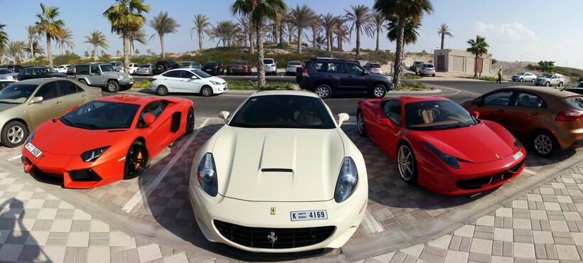 ОАЭ ассоциируется с роскошью и шикарными автомобилями. У туристов есть возможность арендовать люксовые автомобили, такие как Rolls Royce или легендарный Ferrari.