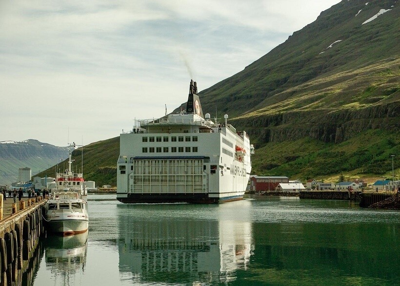 Samskip. Паромы ходят в направлении Далвик — крайний север Исландии. Все путешествие займет не более 3 часов. Рейсы отправляются не каждый день, нужно следить за расписанием на сайте компании. Цены на билеты: для взрослого — 3500 исландских крон, это чуть меньше 2000 рублей, детский билет дешевле на 50 %.