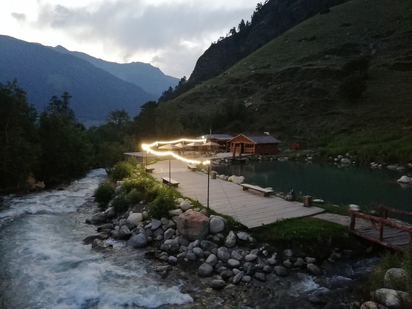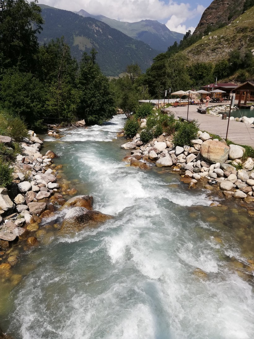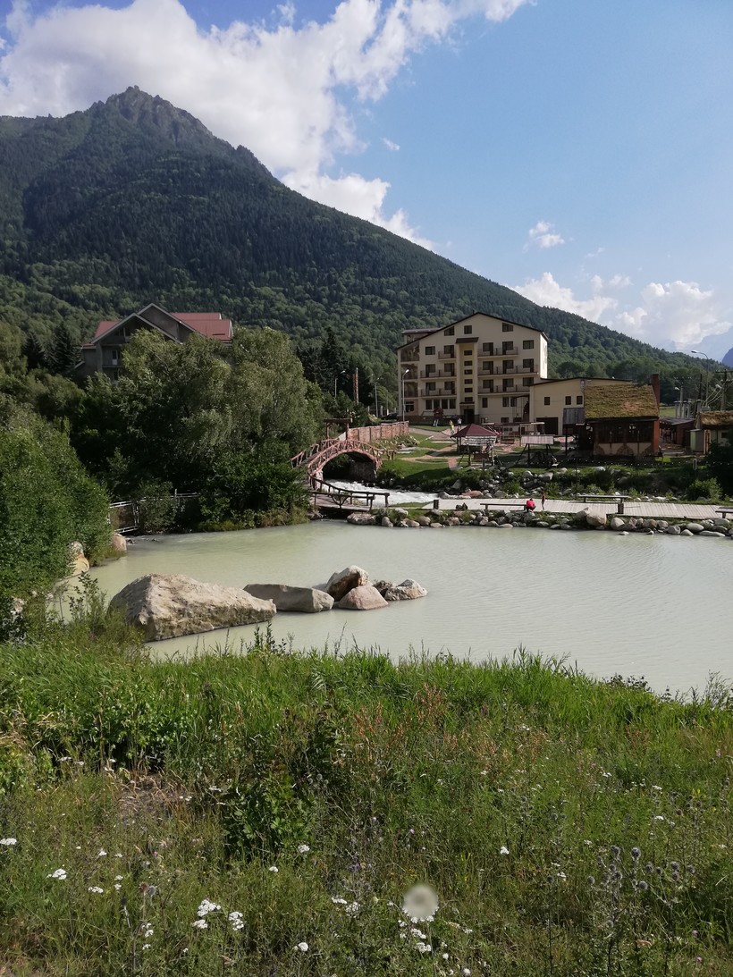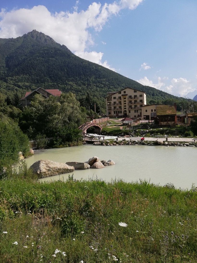 Прекрасная территория, чистый горный воздух, замечательный вид из окна, в ближайшей доступности (при наличии автомобиля) множество интересных мест (водопады, горные озера, Домбай, Тебердинский заповедник и т.д
