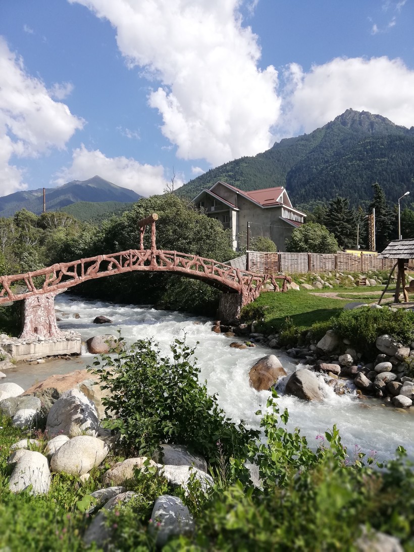 Прекрасные горы, воздух. И отель с хорошими отзывами... но когда мы приехали увидели другую картину. От ухоженности отеля не осталось и следа. Номера старые, требуют ремонта. Нет лифта, крутые ступеньки, если вы с маленькими детьми и хотите накачать себе ноги - вам сюда! Окна из дешевого пластика, весь шум от вечеринок будет развлекать вас всю ночь. Очень опасный мостик через бурную горную реку, который ведёт к бассейну. Вода в бассейне мутная с кучей мошек. Однообразные завтраки. Персонал который очень не хочет работать, и на вашу просьбу найдёт 1000 отговорок.