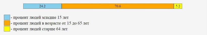 В 2021 году на жителей младше 15 лет приходится 24,2 % (10 711 861). Более 70% составляет работоспособное население страны. Прогноз по увеличению ожидаемой продолжительности дает цифры в 74,5 года, что выше мирового уровня (71 год).