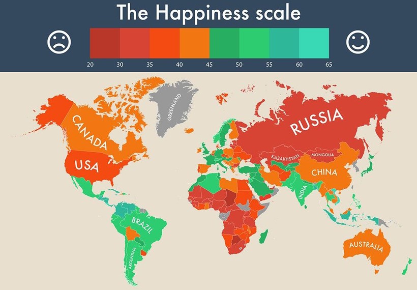 Мне не совсем понятно, как определяют уровень счастья. Да, существуют институты, специалисты которых изучают и обобщают статистику по индексу удовлетворенности жизнью людей в разных странах. Но мне кажется, что, все-таки, это по большей части субъективное мнение, которое может изменяться в зависимости от страны-производителя карты:)
