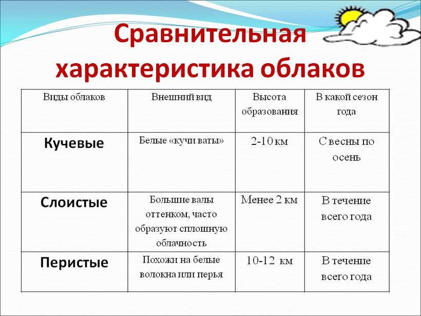 Когда слышу слово облака, то сразу же вспоминаю свой первый урок в качестве учителя. Тогда я была студенткой 4 курса географического факультета и у нас была первая активная практика в школах нашего города. Мне достался 6 Б класс. В это время дети изучали объемную тему «Атмосфера», а мне нужно было провести урок на тему «Облака и атмосферные осадки». По окончанию данного урока я сделала вывод, что детям 10-11 лет очень понравилась данная тема или же их заинтересовала я :).