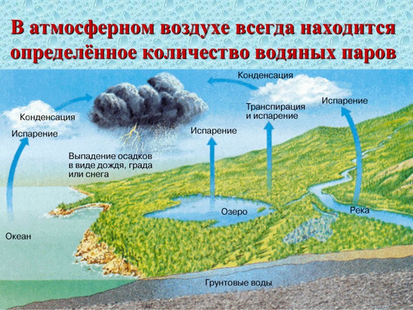 - вода испаряется с поверхности земли;