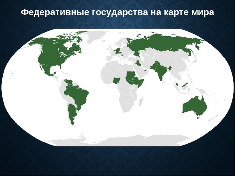 Федеративная форма правления весьма сильно распространена в современном мире, всего насчитывают 25 федераций, в их числе и наша страна.