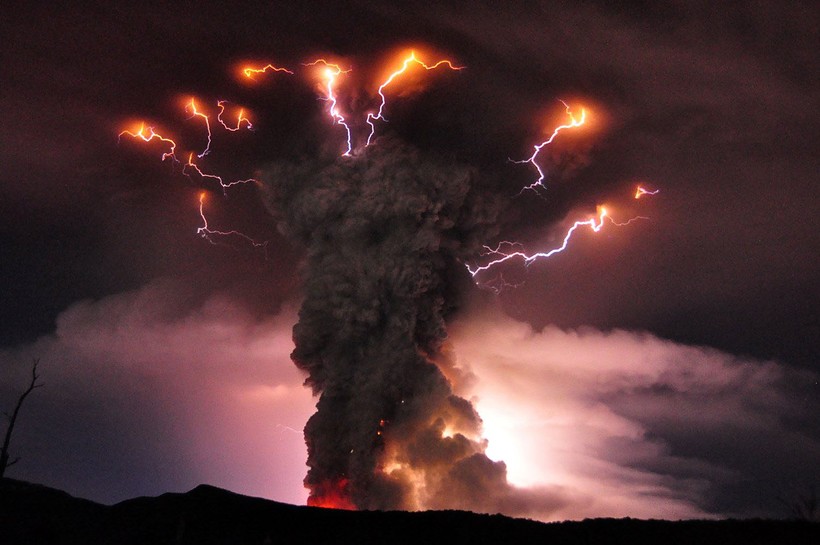 И снова о молниях. На этот раз – вулканических. Молнии, кажется, бьют прямо из жерла вулкана. Причина их появления – заряженные частицы пыли, которые производит вулкан. Результат получается просто фантастическим. Над вулканом будто бы то расцветает, то исчезает пылающий цветок.