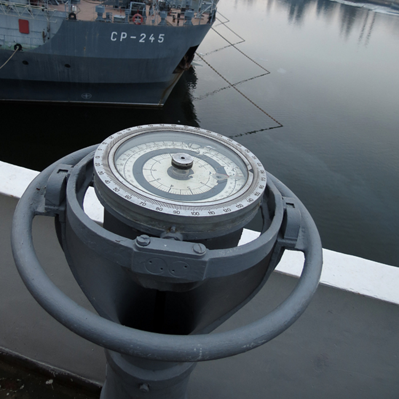 Другая разновидность — военный, который снабжен линейкой, а корпус выполнен из прочного материала. Кроме того, он снабжен визирным приспособлением и увеличительной линзой, что позволяет точно двигаться по заданному курсу.