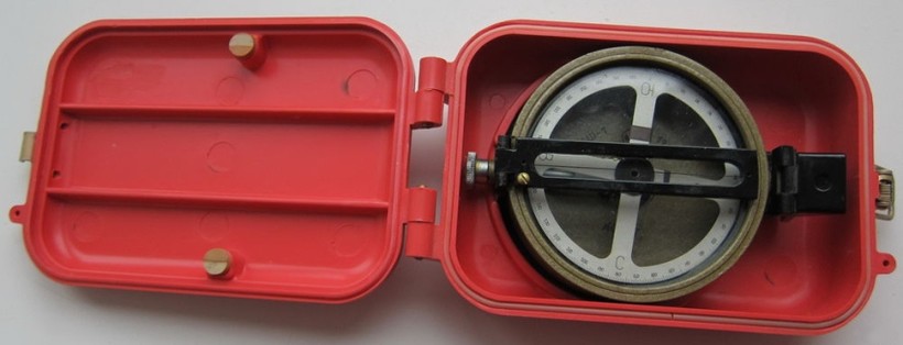 Геологический компас, да, есть и такой, имеет особенности: снабжен клинометром, что позволяет определять угол падения слоев породы.