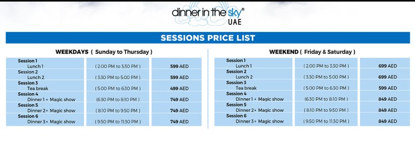 здравствуйте, может кто знает цену на dinner in the sky в дубаи?