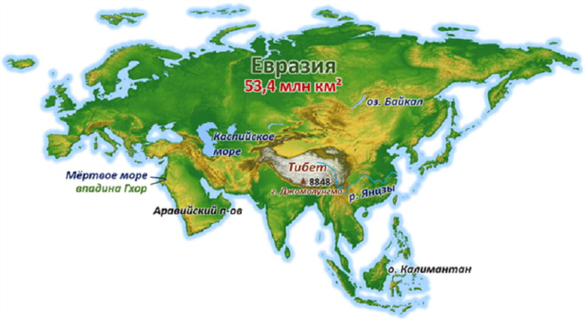 Кому из жителей нашей страны не знакомо такое понятие, как климатические пояса. Можно, не покидая территории России, за неделю приехать из ледяной зимы в знойное лето. И это не пересекая ни единого океана. Такова она — богатая просторами Евразия — материк, где находится наша страна.