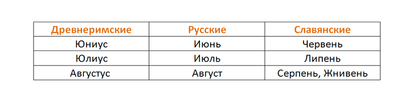 Юниус, Юлиус и Августус – так называли древние римляне месяцы лета: