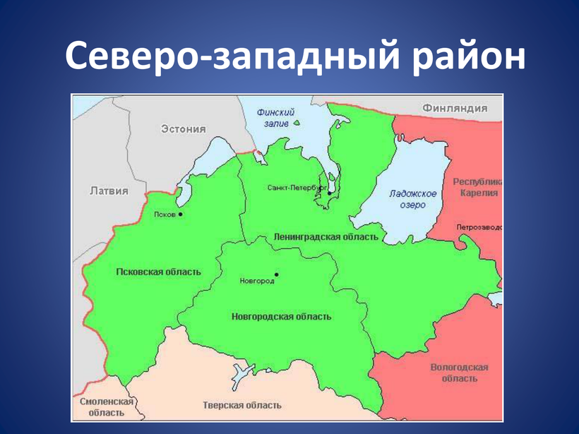 - большие города (Псков, Новгород) находятся сравнительно недалеко от стран Прибалтики, поэтому здесь развита торговля со странами Европы.