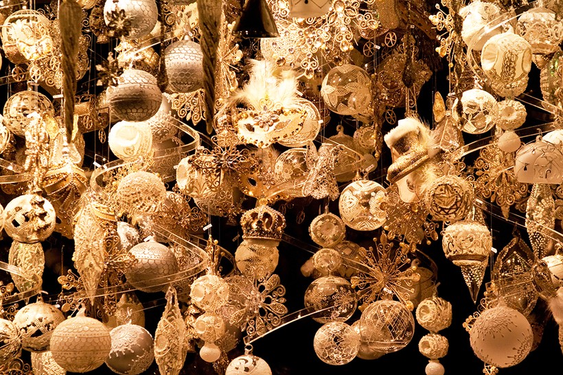 Самое красивое на ярмарке – это ёлочные игрушки. Венские мастера годами их делают, чуть ли не поколениями. И киоски с этими игрушками переливаются таким сказочным блеском, что залипаешь рядом надолго. У меня уже сто тысяч фотографий таких киосков, а я каждый раз снимаю и снимаю... И обнаруживаю, что всё разное! Тут по-новому шары расписали, там другую форму изобрели... Хочется уволочь всё это великолепие домой, но понимаешь, что у тебя просто нет такой ёлки, куда эти игрушки влезут.