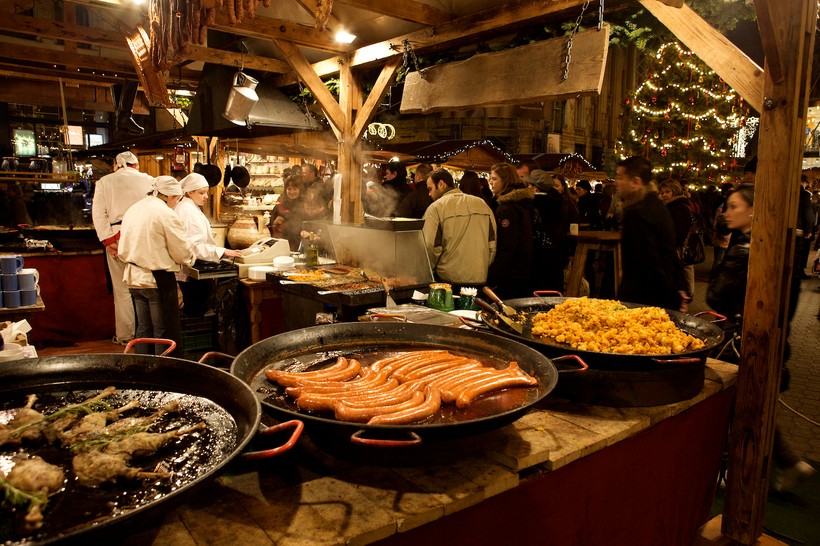 Что за вопрос? Прежде всего, это праздник желудка. Венгрия славится своей кухней, а на рождественских ярмарках вы будете просто поражены количеством и качеством разнообразного венгерского уличного фастфуда. Впрочем, фастфудом все эти разносолы назвать язык не поворачивается – здесь и сочащиеся золотистым соком рульки, и разнообразные колбасы, шкварчащие на огромных сковородах, множество гарниров, среди которых я бы выделил тушеную капусту.