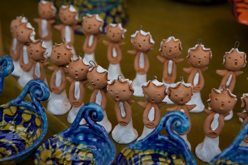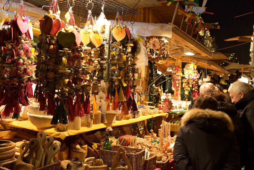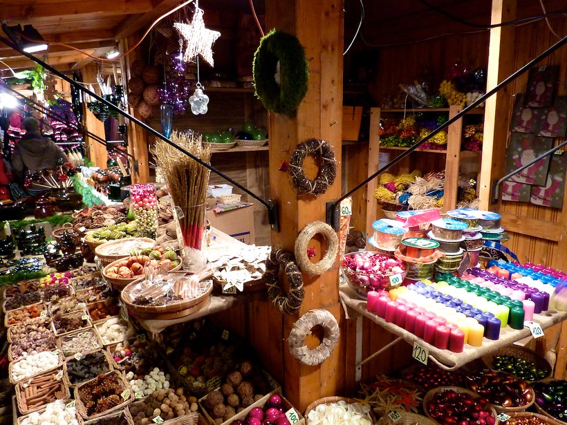 На ярмарке вы можете найти множество сувениров, разумеется, значительная часть из них имеют прямое отношение к Рождеству и Новому году. Свечи, венки, статуэтки, открытки, колокольчики, носки для подарков, посуда. Все такое яркое, нарядное – сразу хочется купить.