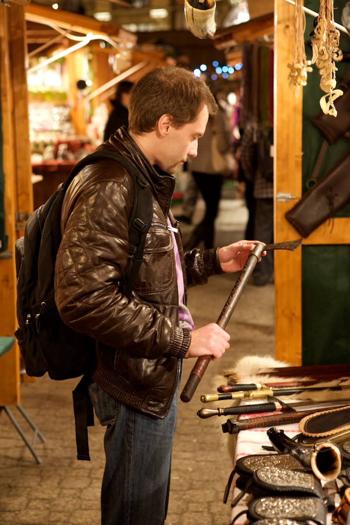 Здесь каждый найдет себе товар по вкусу – здесь также продаются музыкальные инструменты, куклы, одежда, книги, сувенирное оружие. Я не устоял и приобрел себе точную копию средневекового боевого топора – очень впечатляющая штука.