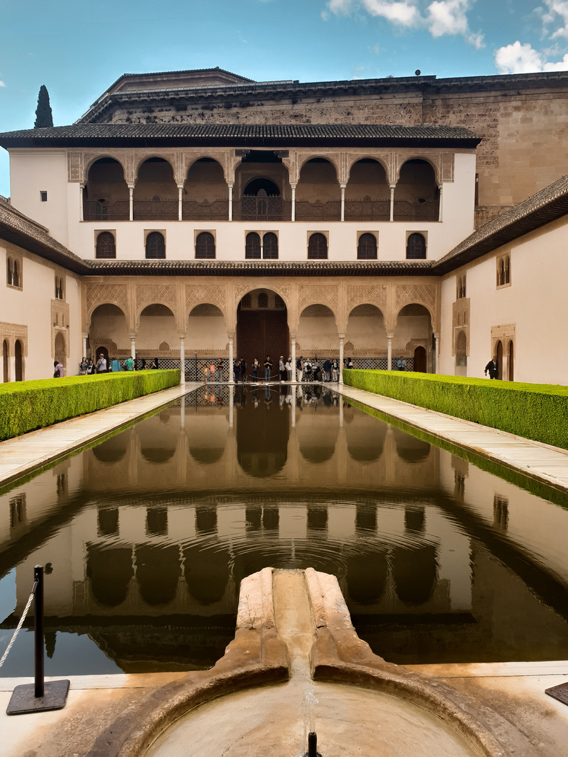 Еще одной точкой Palacio Nazaries, которую невозможно обойти стороной является Миртовый дворик. Это самая популярная часть Дворца: фотографирующих так много, что сложно найти выгодный ракурс для красивой фотокарточки.