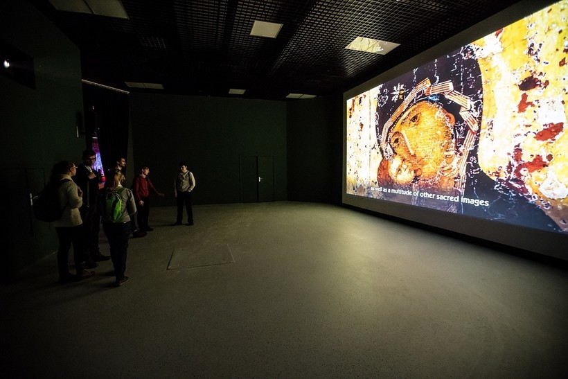 Я не могу назвать его музеем в обычном смысле этого слова. Скорее, это выставка, которая стала возможной при должном развитии техники. В Москве он открылся в ВДНХ. Более 22 тыс.кв.м. площадь этого музея, рассчитанном на 5000 человек. В чем отличие от других музеев, этот сделан так, что с помощью научных достижений человек словно погружается в историческую реальность прошлого. Мне очень понравился такой формат, содержание учебника истории действительно оживает. Такому эффекту способствует трехмерное моделирование событий, инфографика, голограммы. В залах, посвященных различным эпохам установлены сенсорные столы. Я и отдохнула, и получила информацию, буквально залипнув на таком столе. Такое приспособление порадовало моего мужа, который очень любит всякие гаджеты. Любой желающий может ознакомиться с электронными версиями книг по интересующему вопросу и не любит ходить по музеям. Мы оба рассмотривали фотографии, картины, забывая про время.