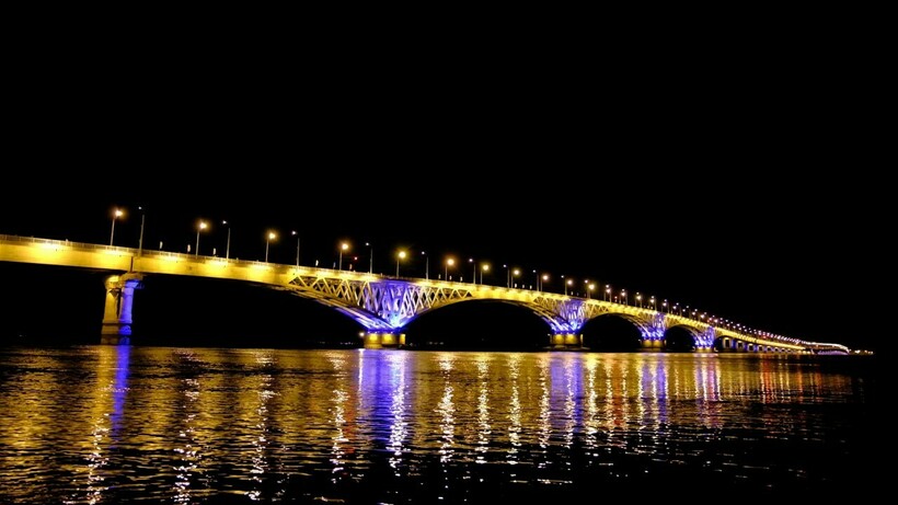 - Необычная конструкция. Мост состоит из нескольких арочных пролетов, которые имеют разную высоту. Может показаться, что это ошибка инженеров и строителей, но на самом деле такой вид объекта имеет практическое применение — некоторые пролеты подняты выше, чтобы под ними могли пройти суда. А при строительстве низких арок удалось сэкономить на материалах. Из-за интересной конструкции Саратовский мост называют «горбатым».