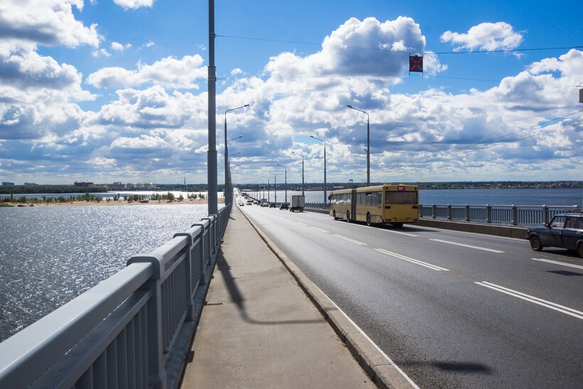 Автомобильный мост, раскинувшийся над Волгой, был возведен около 50 лет назад в исключительно практических целях — соединить Саратов и Энгельс. Но сегодня эта необычная конструкция является не только автомобильной артерией и связующим звеном между городами, но и заслужила звание саратовской достопримечательности. Во время моего визита в Саратов мне удалось не только увидеть мост, но и проехать по нему.
