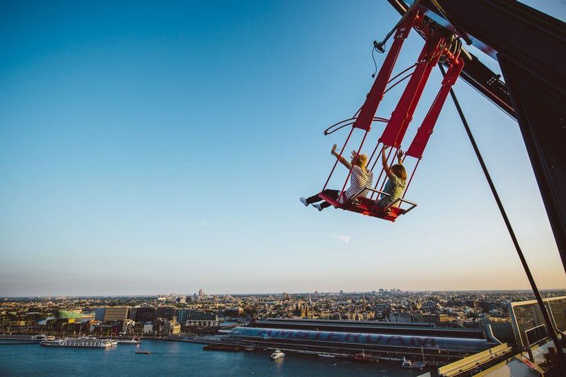 Мне понравилось, что на крыше билдинга находятся качели на высоте 100 метров над землёй. Это довольно экстремальное развлечение называется Over the Edge, и они считаются самыми высокими качелями в Европе. Чтобы покататься, нужно заплатить 5 евро. Я высоты очень боюсь, поэтому прокатиться на них не осмелилась:)