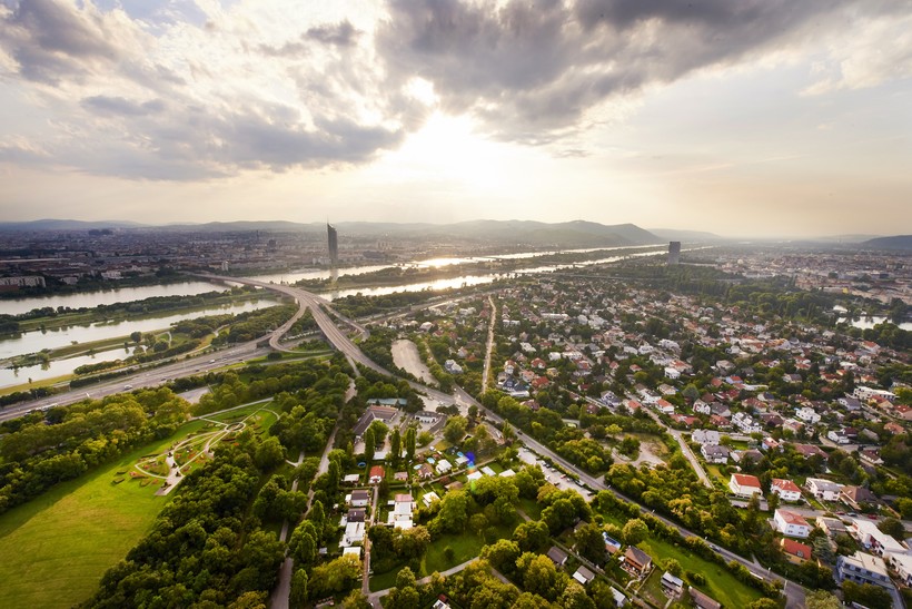 Дунайская башня, как легко понять по названию, находится на берегу Дуная, на огромном полуострове, занятом, в основном, небоскрёбами Донаусити. Впрочем, видно её из любого уголка столицы, - не зря она со своими 252 метрами гордо занимает первое место среди австрийских высоток. Разве можно такое пропустить? И я начала собираться в путь.