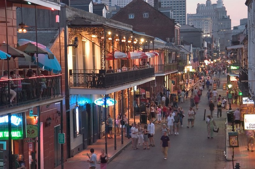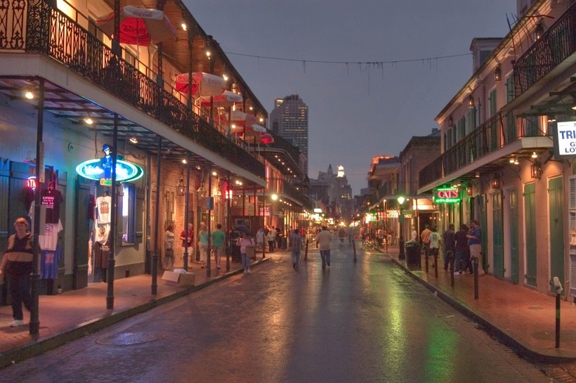 Главная улица Bourbon Street, центр ночного веселья. Но рекомендую заходить в бары в прилегающих переулках, цены там ниже. Особо оценят местные забегаловки любители пива, оно здесь исключительно вкусное. Советую попробовать популярную здесь креольскую кухню. Хороша «джамбалайя» (нечто вроде смеси плова и паэльи).