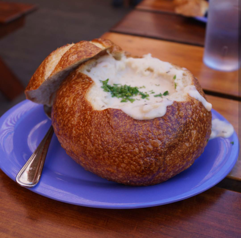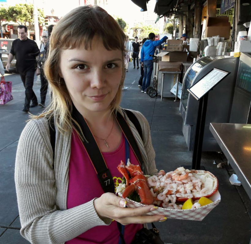 К обеду мы приехали на пирс и решили сначала пообедать, прежде чем пойти гулять. Выбор здесь богатый - от уличных прилавков до ресторанов! Мы остановились на кафе. О том что стоит есть выбор даже не был - конечно же знаменитый крабовый суп, в кафе есть 2 опции - суп в тарелке классической или в хлебной, в хлебной хоть и стоит дороже, но берите этот вариант - я считаю, что этот суп надо есть именно так. Мы не смогли доесть хлебную тарелку, но советую взять ее с собой, покормите чаеек на самом пирсе.