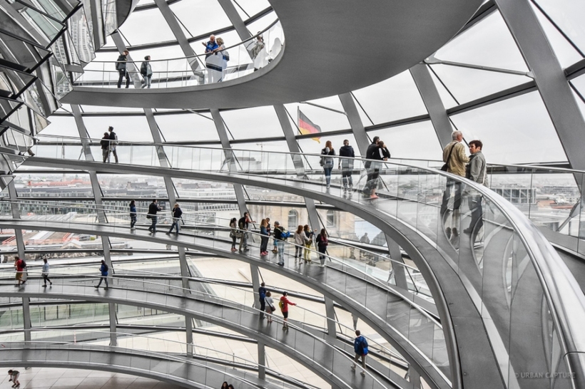 Зачем всё это нужно. Наверное, весь мир обошли кадры, сделанные в 1945 году на куполе рейхстага. Тогда советским солдатам пришлось совершить подвиг, чтобы дойти до Берлина и установить красное знамя над символом враждебной страны. Сейчас ни воевать, ни совершать героических деяний для подъёма на купол Рейхстага не потребуется. Достаточно приехать в Берлин и грамотно спланировать своё пребывание. Правда, и Рейхстаг уже не тот, что раньше. В 1990 году началась реконструкция здания, в ходе которой форма купола была полностью видоизменена. С другой стороны, туристы от этого только выиграли, потому что новый стеклянный купол, созданный Норманном Фостером, дал им возможность посетить смотровую площадку, откуда можно полюбоваться окрестностями, а заодно посмотреть, как проходят заседания немецкого парламента. Я, как, наверно, все посетители, чувствовал себя во время экскурсии надзирателем за депутатами, глядя на зал заседаний с высоты.