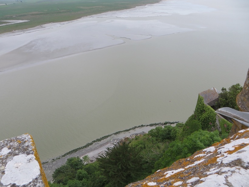 Одна я бы не рискнула пойти, но мы были в паре и нагло шли поодаль от детской группы. Было страшно, как будто идешь по тонкому льду. Постепенно страх проходит. Нам открылись огромные просторы серого влажного песка. Он плотный и ходить босиком по нему в теплое время года вполне комфортно. Виды бухты, зеленые луга, голубое небо успокаивают настолько, что забываешь об опасности. Будьте бдительны. Всё же ходить самостоятельно по заливу Мон-Сен-Мишель я не рекомендую.