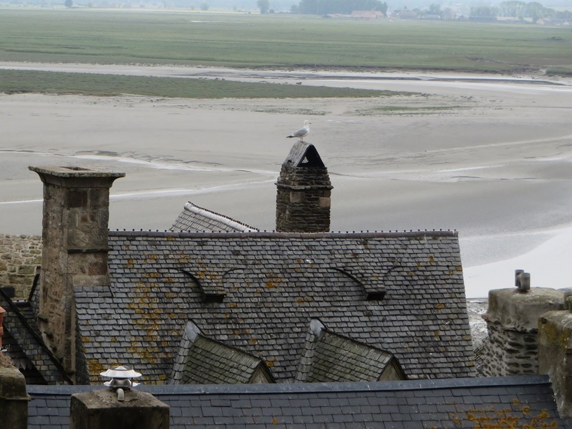 Если смотреть на залив в высшей точке прилива, то даже не верится, что недавно здесь ходили люди. Вода настолько высоко поднимается, что полностью меняет ландшафт. Зато после отлива жизнь как будто оживает здесь. Повсюду крики чаек, которые носятся в поисках крабиков и прочих моллюсков, принесенных морем. Воздух Атлантики очень свежий.