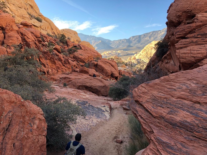Ползая по каньону в Юте, мне этого показалось мало и я решила, что хочу посмотреть ещё. Я отправилась в "Каньон Красная скала", что находится недалеко от Лас-Вегаса в пустыне Мохаве. Думаю, что сюда приезжают люди насладиться тишиной и спокойствием от шумного города грехов.