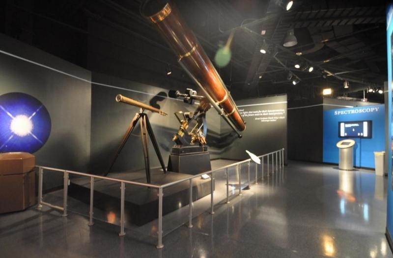Для любителей техники проходит выставка телескопов, рассказывающая об их истории и строении.