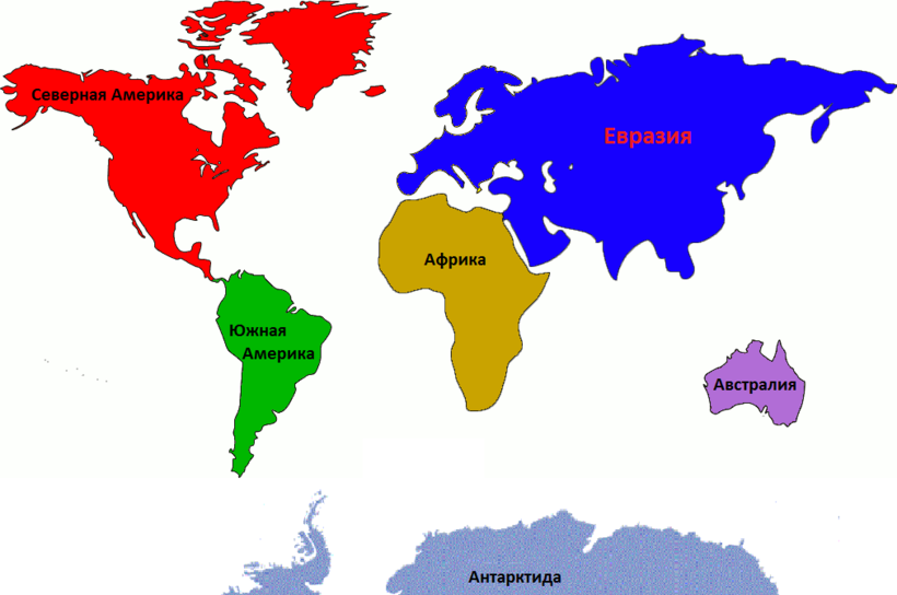 Не следует путать части света с континентами, хоть они и действительно похожи, а некоторые даже совпадают. Так же, как и частей света, их насчитывается шесть штук: