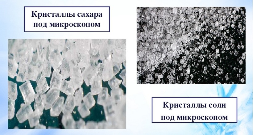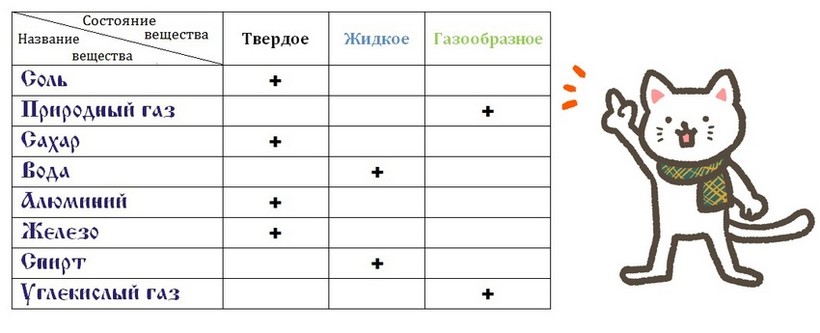 А применительно к таблице, стоит упомянуть, что сахар и соль могут показаться жидкими веществами, но на самом деле они сыпучие вещества, весь их объем состоит из маленьких твердых кристаллов.