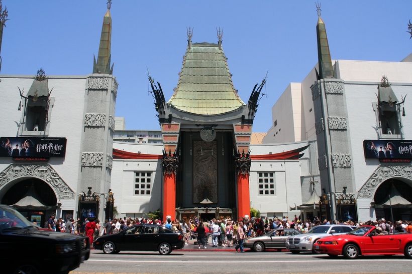 На Аллее славы находится знаменитый Китайский театр TCL. Насколько я знаю, в этом театре нередко проходят премьеры фильмов, на которые съезжается много известных голливудских личностей. Театр внешне выглядит весьма экстравагантно, резко выделяется своим китайским фасадом. На крыльце театра находятся отпечатки рук и ног знаменитых актёров, которые были здесь на премьерах своих фильмов.