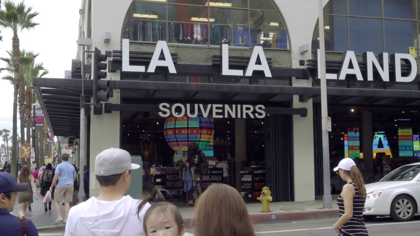 На Аллее Славы находится огромное количество сувенирных магазинов. Мне больше всего понравился «LA LA Land», который расположился буквально в нескольких шагах от Китайского театра. Это огромный магазин, где продаётся буквально всё, что так хочется привезти туристу из Лос-Анджелеса: статуэтки Оскар, киношные хлопушки, футболки и толстовки с надписью: «I love LA», магнитики с видами города и так далее, и тому подобное.